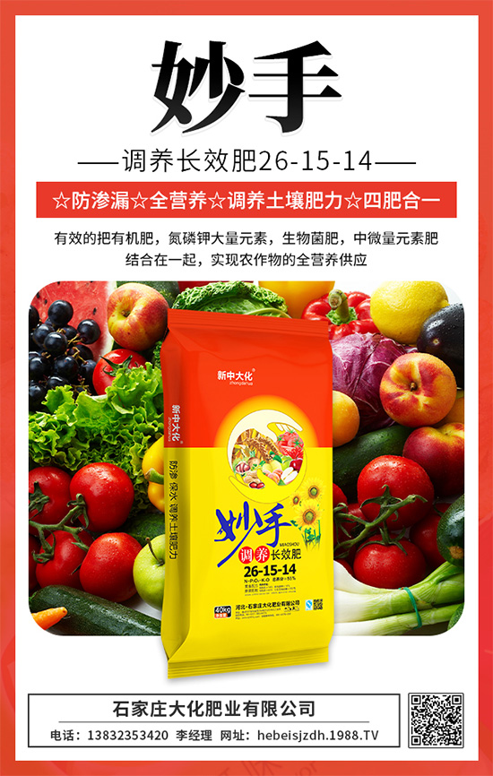 妙手調養(yǎng)長效肥,多種作物都能用,比同樣含量摻混肥控釋肥價格低,有賣點,利潤高,農(nóng)民說好,經(jīng)銷商賺錢多的好產(chǎn)品,值得你關注。
