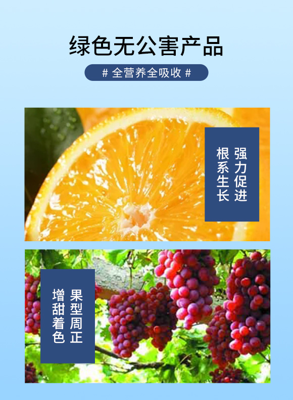 本品能夠激活作物的種胚活力,增加作物細(xì)胞數(shù)量,促進(jìn)作物生殖生長(根、莖、葉、果實(shí)協(xié)調(diào)生長),促進(jìn)作物花芽分化,早發(fā)芽,早現(xiàn)花,早結(jié)果,提高籽粒成熟度。預(yù)防失綠,空心,果型周正,增甜著色,耐儲運(yùn)。